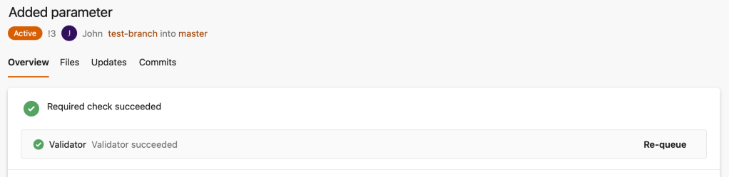 Make a new commit and push it to the pull request. It reruns the validator pipeline and validates the newly made changes. In the overview it shows that the validation has failed, which means that the mistake has been automatically detected.