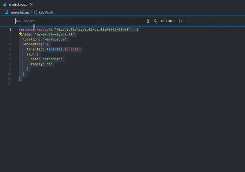 | resource keyVault 'Microsoft.KeyVault/vaults@2023-07-01' = { | |
